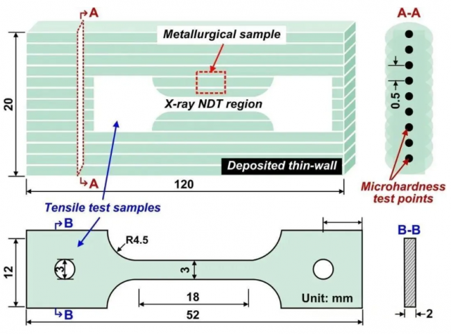 图2 沉积薄壁件力学性能测试尺寸示意图